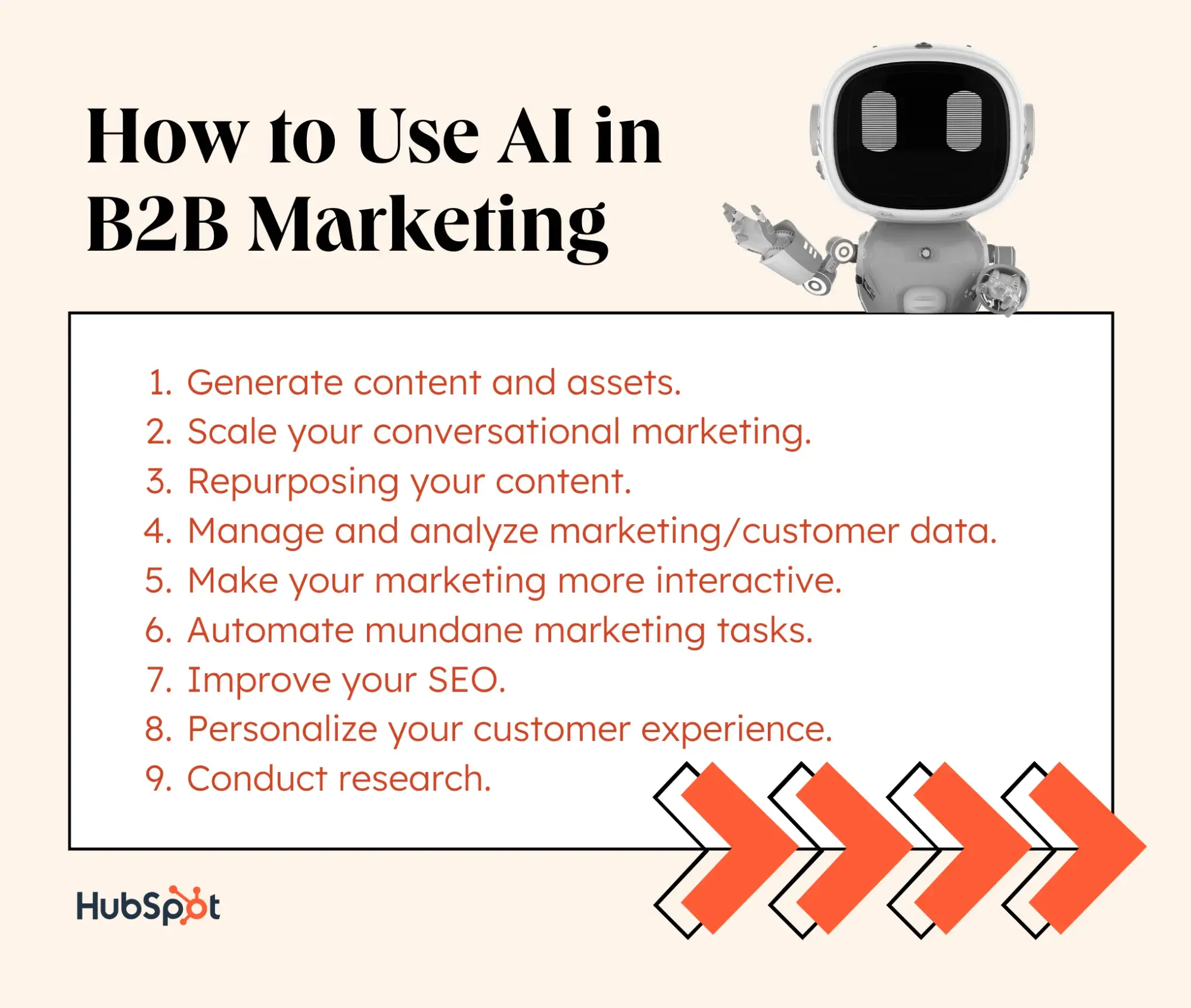 In almost every use case, AI is known to increase efficiency, speed up optimization, lower costs, and increase ROI. Want to see for yourself? Here are nine of the best ways to use AI in B2B marketing to level up your day-to-day.